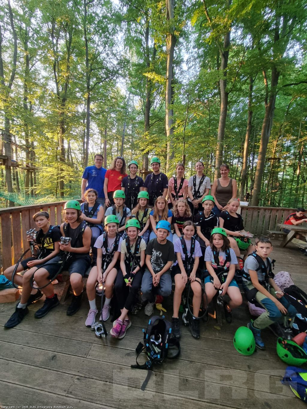 Die Anreise erfolgte komfortabel gemeinsam zum Teil im DLRG-Bus. Treffpunkt war um 15:30 Uhr am Park. Nach einer kurzen Sicherheitseinweisung wurden alle mit Klettergurten und Helmen ausgestattet.